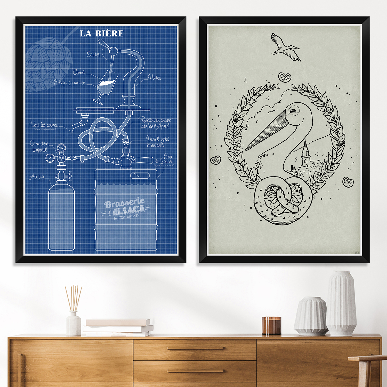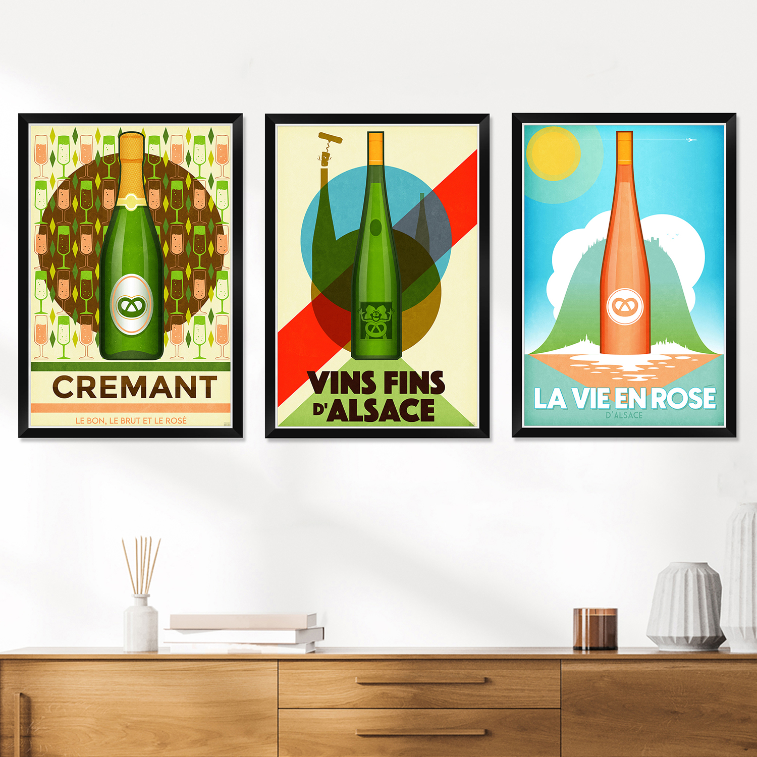 Conçues par les créateurs de la marque, ces affiches originales reflètent l'esprit créatif et l'authenticité de la marque qui met en valeur l’Alsace à travers plusieurs centaines de visuels et designs, fruits de l’imagination galopante des Bretzel Brothers, les créateurs-illustrateurs de la marque BRETZEL AIRLINES. L’ensemble de la collection est pensé en famille, dessiné et imprimé à Strasbourg.