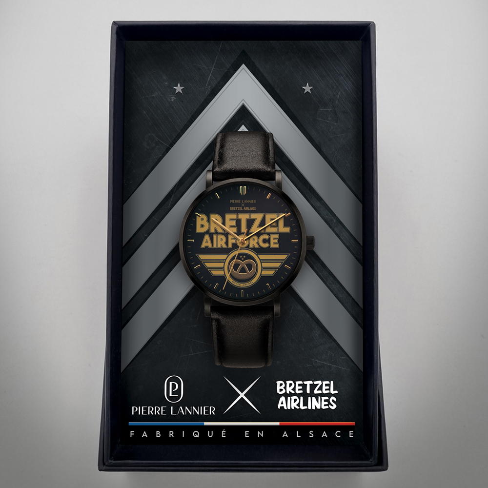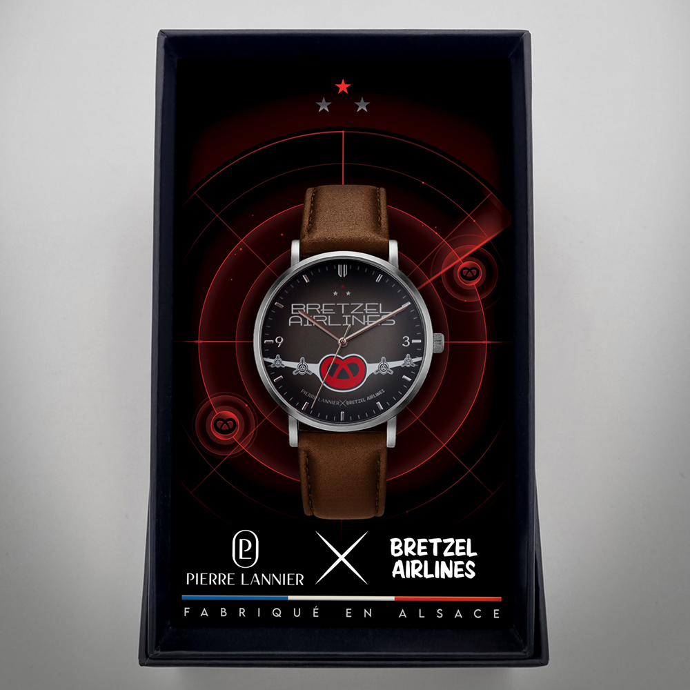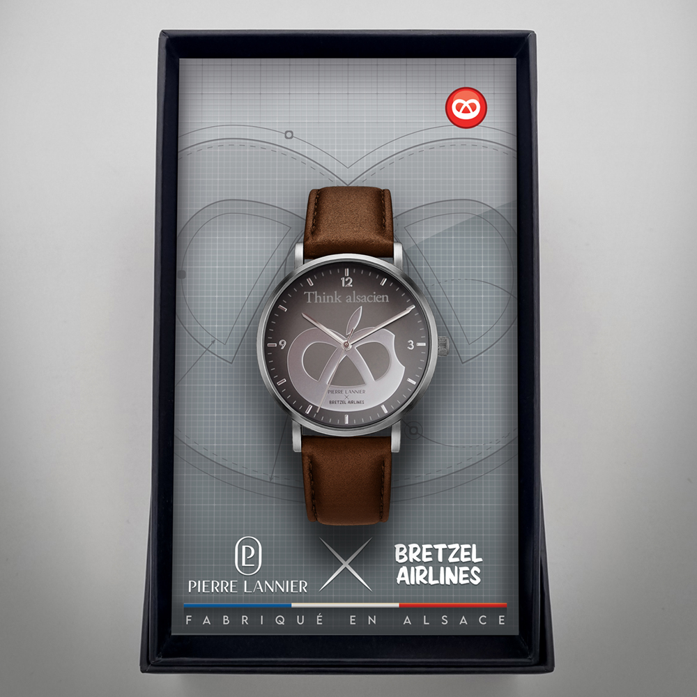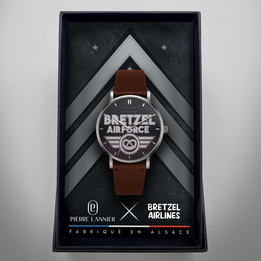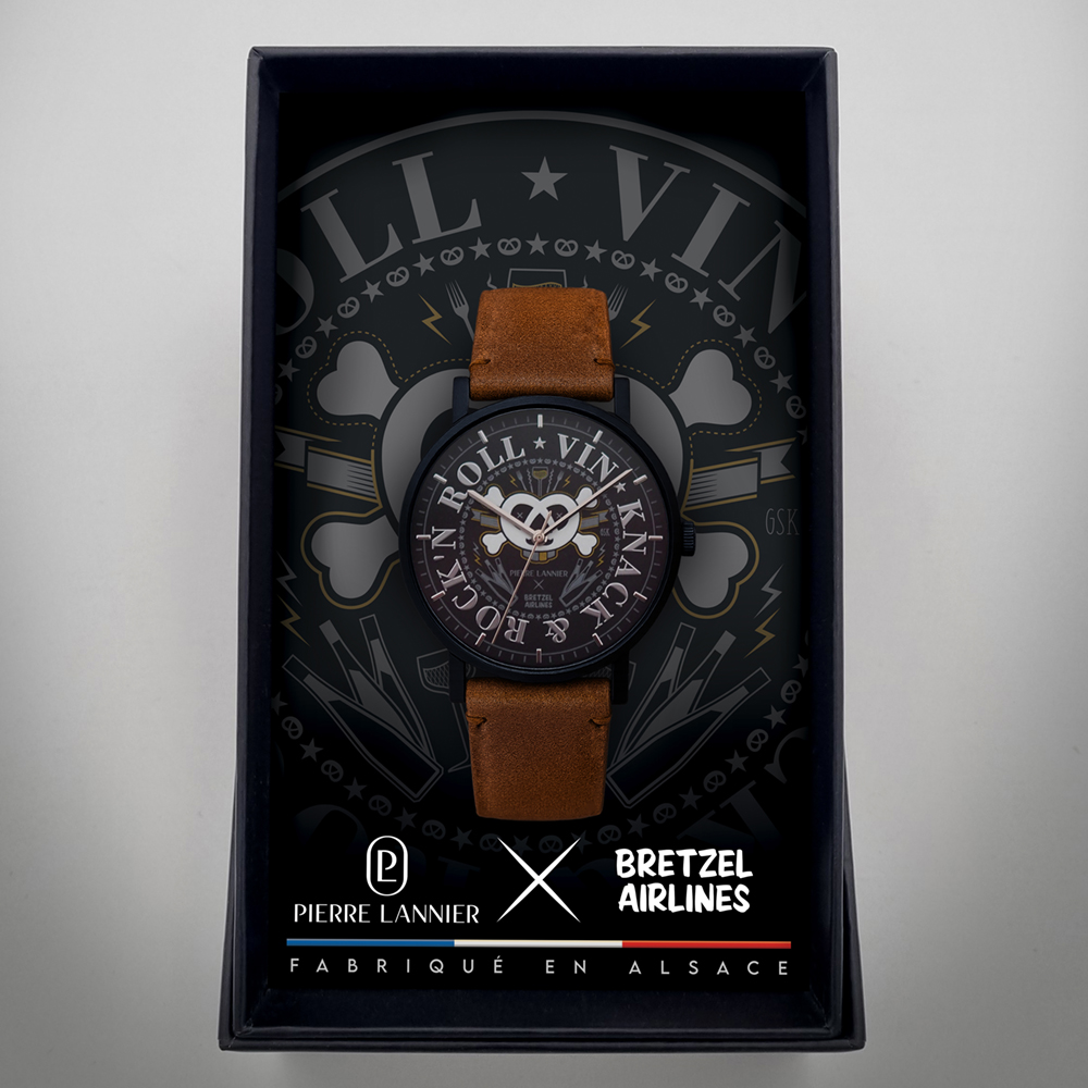 Entièrement dessinées par Bretzel Airlines, ces montres allient la modernité d’un design graphique et épuré à la finesse des détails chers à la marque. Chaque modèle traduit, à sa manière, l’attachement à la culture et à l’esprit de l’Alsace, entre humour, authenticité et élégance. Une collaboration 100 % alsacienne pour une collection de montres à l’image de la région. Fabriquées avec le savoir-faire horloger de Pierre Lannier, ces montres incarnent la rencontre parfaite entre créativité et l’artisanat locale.