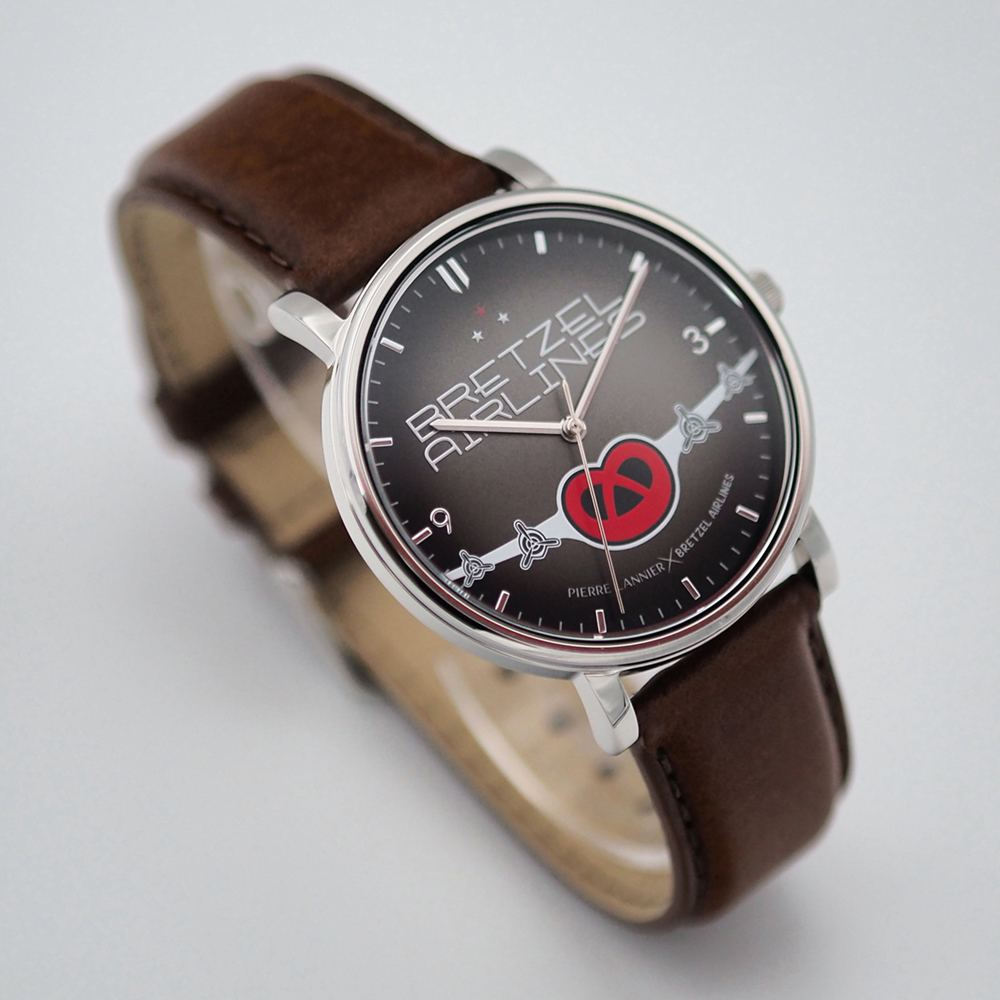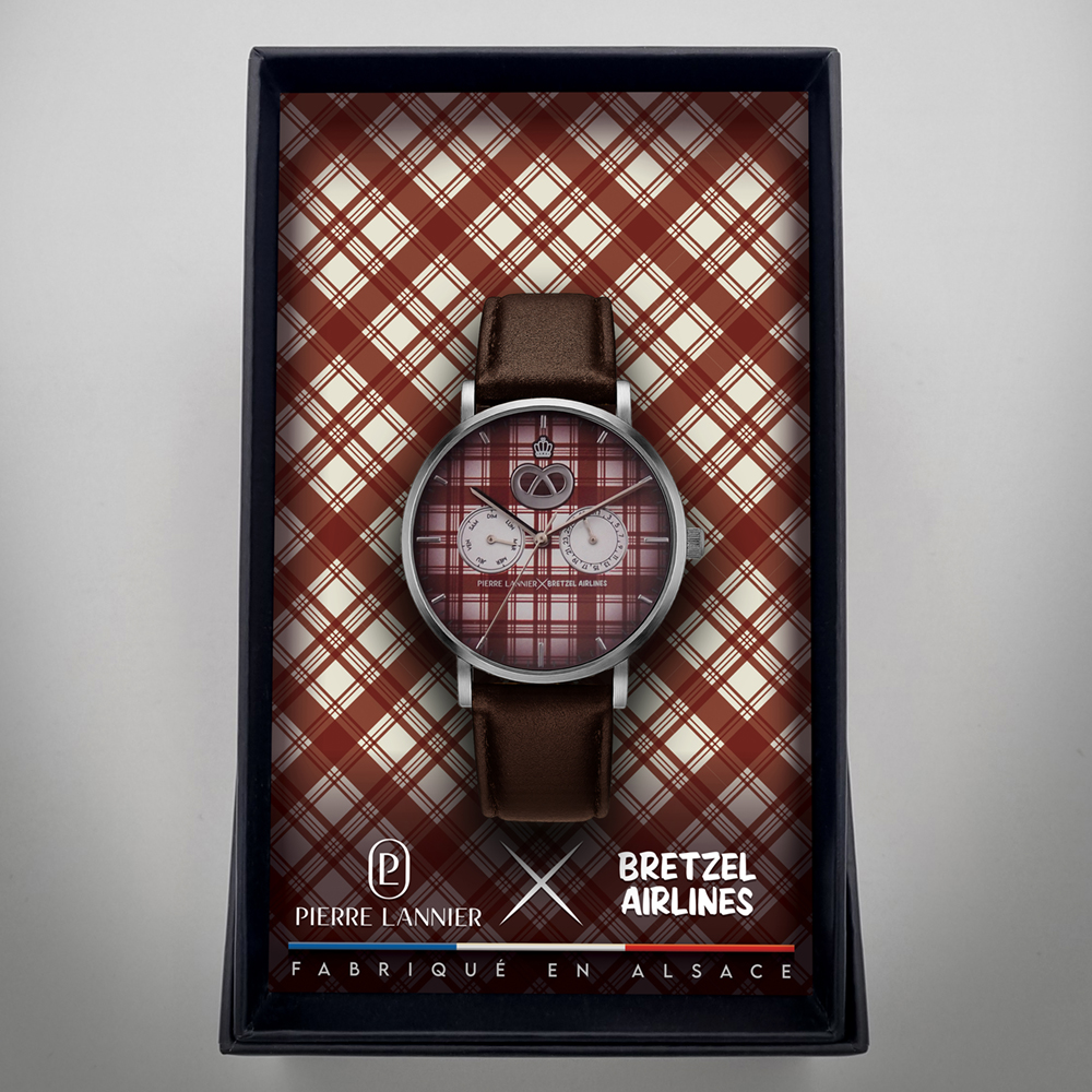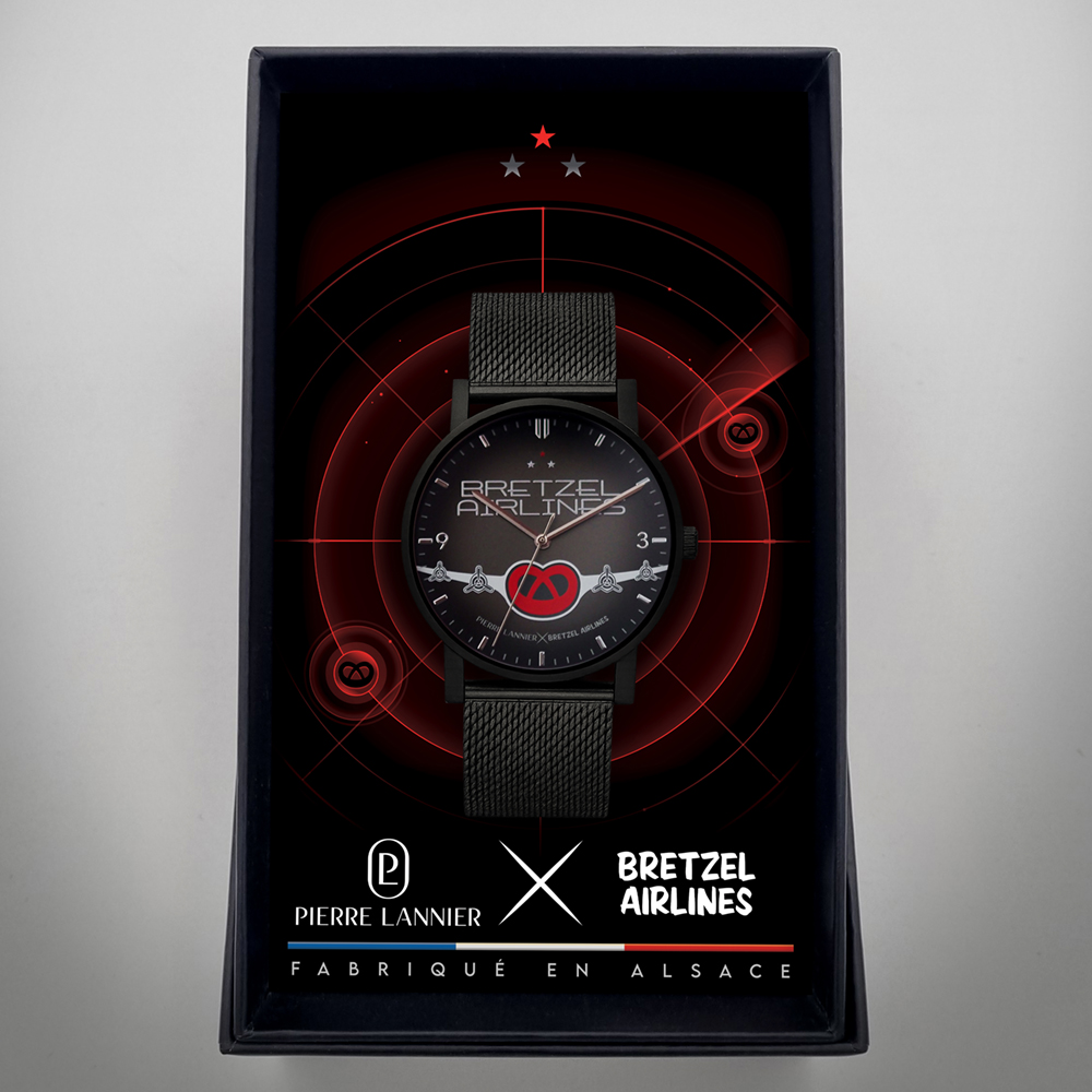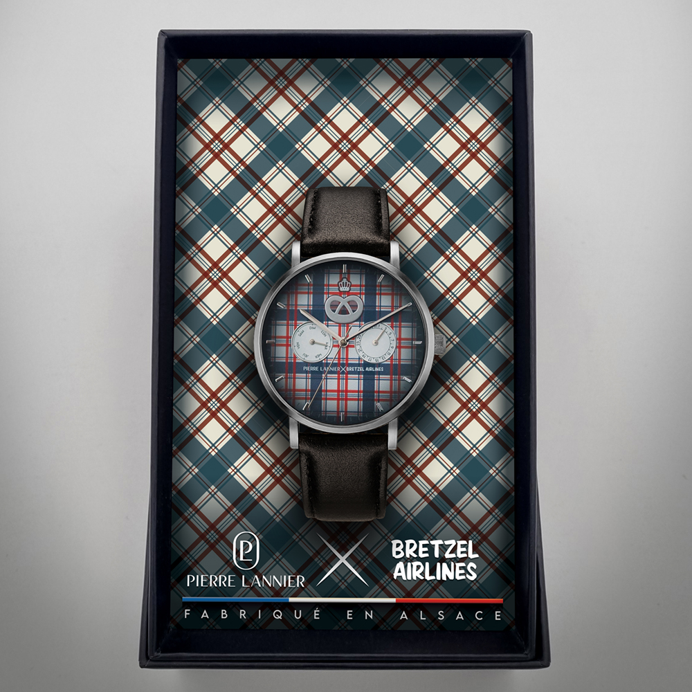 Entièrement dessinées par Bretzel Airlines, ces montres allient la modernité d’un design graphique et épuré à la finesse des détails chers à la marque. Chaque modèle traduit, à sa manière, l’attachement à la culture et à l’esprit de l’Alsace, entre humour, authenticité et élégance. Une collaboration 100 % alsacienne pour une collection de montres à l’image de la région. Fabriquées avec le savoir-faire horloger de Pierre Lannier, ces montres incarnent la rencontre parfaite entre créativité et l’artisanat locale.
