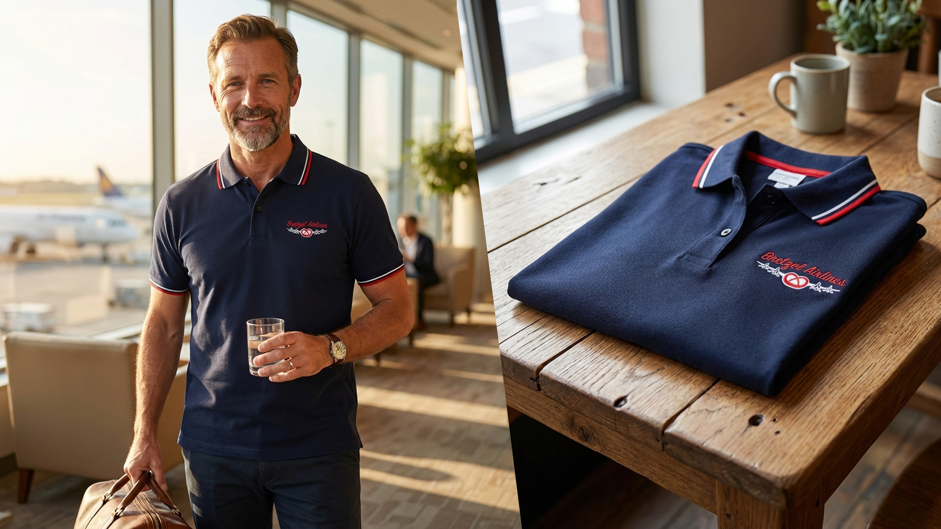 Les superbes polos Bretzel Airlines sont réalisés en coton piqué de grande qualité. Elégance assurée pour un look sportswear-chic. Les couleurs des liserés de finitions au col et aux manches sont assorties au célèbre blason de la compagnie Bretzel Airlines, brodé sur le cœur. Les coloris des textiles et les fils de broderie sont coordonnés avec notre collection de casquettes.